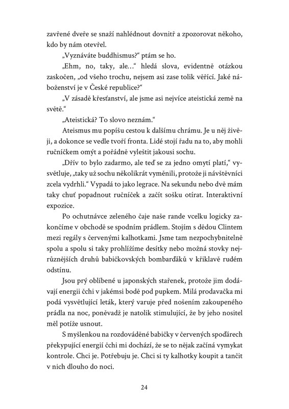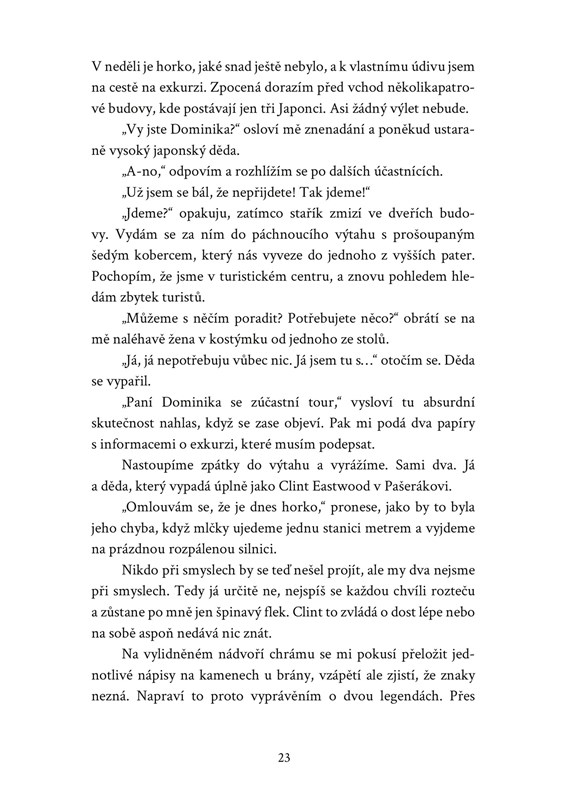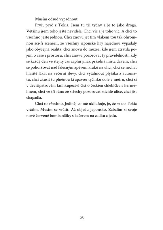 Dominika putuje Japonskem. Z Tokia na venkov, od formalit k přátelství a z klidu samoty do zájmu médií. Ať už se octne opilá s mikrofonem v ruce nebo zamčená v hodinovém hotelu, o legraci není nouze. Koupe se spolu s babičkami, ujíždí před tajfuny, jí syrové chobotnice a neustále se klaní. Ze svobodného sedla motorky se rozhlíží po světě plném pravidel a tradic a přemýšlí. Kým by byla, kdyby se narodila v Japonsku?