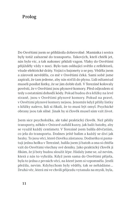 Příběh jedné z posledních žijících pamětnic Osvětimi, která po válce odešla do Velké Británie, kde absolvovala psychoterapeutický výcvik u Anny Freudové a celý profesní život se věnovala dětské psychoterapii. Kniha postupuje chronologicky od Lydiina dětství stráveného v předválečné Ostravě přes neúspěšný pokus o útěk do Polska, pobyt v Terezíně, v koncentračním táboře Osvětim, osvobození a odchod do Británie. V Británii se pak Lydie Tischlerová začala starat o problémové děti, nejdříve jako dobrovolnice, postupně jako vystudovaná psycholožka a psychoterapeutka. Její věcné a zároveň živé vyprávění vlastních osudů je tak nejen cenným osobním svědectvím, ale také zajímavým příspěvkem ke studiu dětské psychiky, kterou poválečná psychiatrie teprve objevovala. Součástí knihy jsou dobové fotografie.