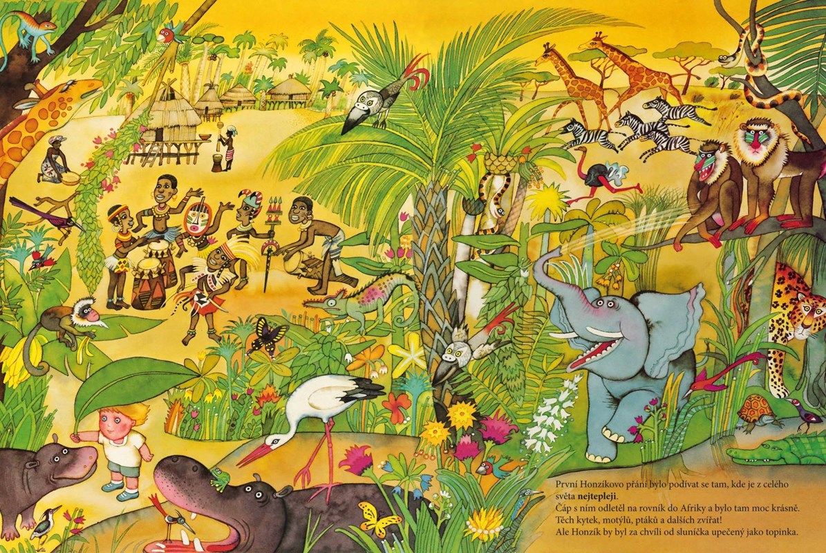 V tomto velkoformátovém leporelu nás jeho hrdinové, čáp a chlapeček Honzík, vezmou s sebou na velkolepou cestu kolem světa. Když totiž čáp Honzíkovi nabídne, že mu splní přání, chlapec se touží podívat na nejpozoruhodnější místa planety. Prozkoumáme společně nejvyšší, nejteplejší i nejchladnější kraje... A kde naše cesta skončí? Přece tam, kde je na celém světě nejlíp - doma u maminky!