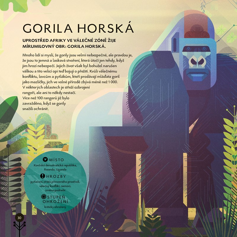 Impozantní lední medvědy, nosorožce, gorily, vesele vyhlížející papuchalky, roztomilé činčily, nádherně barevné papoušky ara a mnohé jiné druhy zvířat možná brzy uvidíte už jen na stránkách této či jiných knih. Všem totiž hrozí ve volné přírodě naprosté vyhynutí. Ochránci zvířat po celém světě se však nevzdávají a bojují za jejich záchranu ze všech sil, jak dokazují i projekty popsané v této knize. Přidáte se k nim a pomůžete tyto nádherné tvory zachránit? Každá pomoc se počítá!