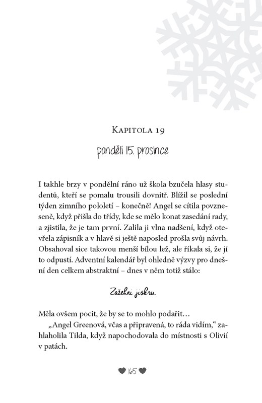 Už jsou skoro Vánoce, ale Angel Greenová neslaví – má moc práce se školou a musí se připravit na důležitou zkoušku. A navíc ještě organizuje benefiční akci na pomoc místnímu hospici. A jako by se jí vesmír vysmíval, jejím parťákem při plánování se stane Caspar Johnson – kreativní, zábavný a pohledný spolužák, který je ale naprosto nespolehlivý.