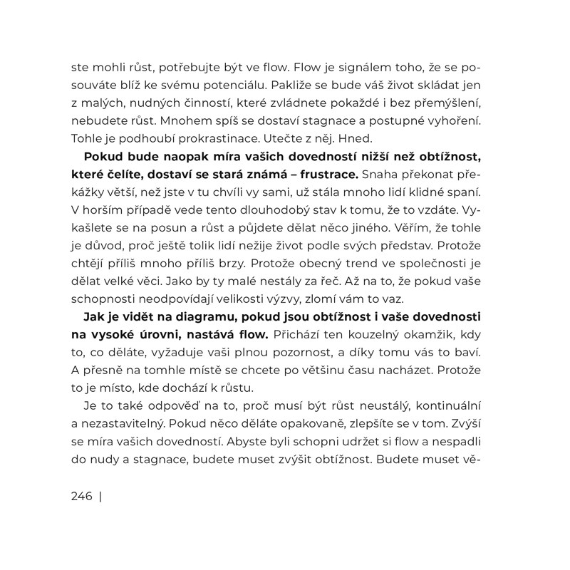 V provokativní knížce se naučíte, jak se pomocí drobných změn osvobodit z nekonečného krysího závodu. Ze závodu, ve kterém za velkou námahu sklízíte jenom drobky z koláče, který je tu pro všechny. I pro vás. Objevíte pět klíčových oblastí, které zrychlí váš osobní růst. Zasmějete se principům, které jsou podané lidsky, ale bez servítků. Poznáte průlomové objevy z vědeckých studií a nasajete know-how z tisíců hodin autorovy praxe v českém prostředí.