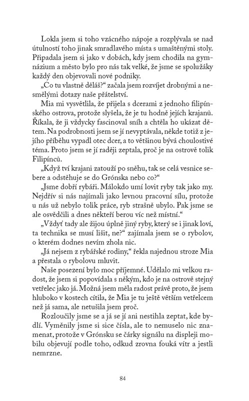Kniha inspirovaná autorčiným pobytem v Grónsku. Eva Střihavková vystudovala dějiny umění a mezinárodní vztahy a pracovala jako redaktorka a editorka v médiích. Kromě Grónska žila také v Gruzii.