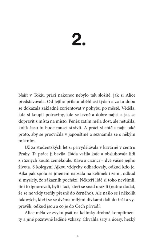 Alice cestuje z Prahy do Japonska s jediným cílem – najít někoho, kdo byl v jejím životě důležitý. Muže, s nímž se seznámila v Praze a do kterého je i po dvou letech stále beznadějně zamilovaná. Jenže najít jednoho člověka v mnohamilionovém Tokiu se zdá být prakticky nemožné. Alice zná jen jeho křestní jméno, po ruce má starou fotografii a její japonština má k dokonalosti daleko. Nic z toho ji však nedokáže odradit.