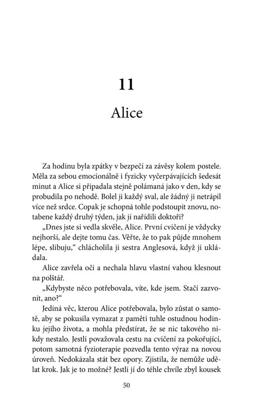 Alice a Alfie mají za sebou hrozivé nehody. Alfie přišel o nohu při autohavárii, Alice byla popálená při požáru, který propukl v její kanceláři. Teď leží v nemocnici jenom kousek od sebe, ale nikdy se neviděli, protože Alicina postel na nemocničním oddělení pro dlouhodobé pacienty je obehnána závěsy a její obyvatelka nechce nikoho vidět. Ani sebe.