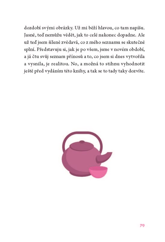 Inspirativní příručka, ve které mediálně známá psycholožka Alexandra Schneider Hrouzková prostřednictvím svěžích a originálních příběhů ze svého života nabízí kromě zábavného, odlehčeného čtení také návod na spokojený život. Každá kapitola je navíc doprovázena balíčkem praktických psychologických cvičení a úkolů, v nichž si přijdou na své i fanoušci instagramu, a to díky možnosti sdílet fotky inspirované jednotlivými cvičeními s Alex a ostatními čtenáři pod hashtagem #tajemstvicinskekocicky. Pořiďte si deník, který budete chtít mít neustále při sobě a čerpat z něj pozitivní energii.