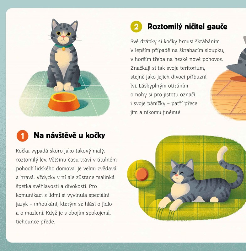 Pečlivě si prohlédni tváře známých krotkých a divokých zvířat: najdeš, co mají společného a v čem se od sebe liší? Kromě toho se můžeš dozvědět spoustu zajímavých rozdílů nebo naopak překvapivých shod v jejich zvycích a chování.