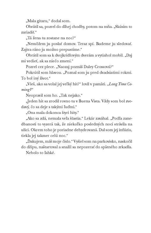 Päť rokov sa len tak potĺka, potom sa zaľúbi do Daley Crossovej, speváčky s anjelským hlasom, ktorá potrebuje vlastnú pieseň. No keď si uvedomí, že Daley naozaj ľúbi, musí čeliť tragédii, ktorá ohrozí jeho život aj kariéru. Nemá kam ísť, tak sa napokon vráti domov do odľahlých coloradských hôr, kde hľadá odpovede o svojom otcovi a jeho viere.