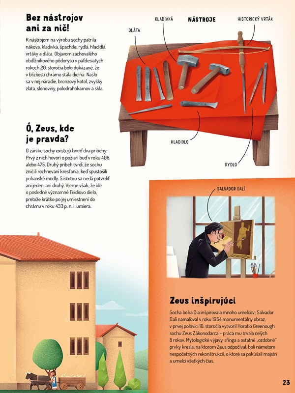 Každý bol jedinečný, jeho krásu a veľkoleposť ospevovali najväčší básnici a spisovatelia svojej doby. Všetci túžili uvidieť na vlastné oči... divy sveta. Rodoský kolos, majestátne pyramídy v Gíze, Alexandrijský maják, ktorý odolával zemetraseniam a vetrom, uhrančivá Diova socha v Olympii, dych vyrážajúci Artemidin chrám v Efeze. Mauzóleum v Halikarnasse, ale aj mýtami a legendami opradené visuté záhrady v Babylone. Do dnešnej doby prežil jeden jediný. S nami sa môžeš vrátiť v čase a nahliadnuť pod pokrievku tvorcov dávnych architektonických skvostov! Veď každý z nich pozostáva z toľkých maličkostí, drobných úkonov, každodennej námahy a predovšetkým vytrvalého úsilia či už s pomocou strojov, alebo bez nich.