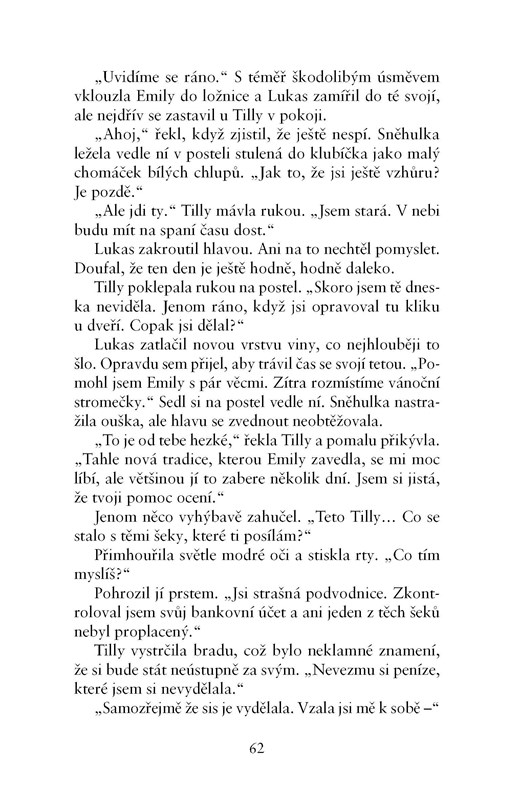 Sněhulka, příhodně pojmenovaná hebká kulička kočičích chlupů, tráví svoje úplně první Vánoce v pohodlí penzionu, který patří slečně Tilly. S provozem jí pilně pomáhá Emily, jejímž snem je otevřít si vlastní pekárnu. Emily Sněhulku zbožňuje, ale z nového návštěvníka, Tillyina synovce Lukase, už tak nadšená není. Což je divné, protože Sněhulce její neomylný zvířecí instinkt napovídá, že Lukas a Emily by rozhodně měli být kamarádi! Musí ty tvrdohlavé lidské bytosti přimět, aby se na sebe podívaly moudrýma očima a srdcem jednoho věrného, milujícího kotěte…
