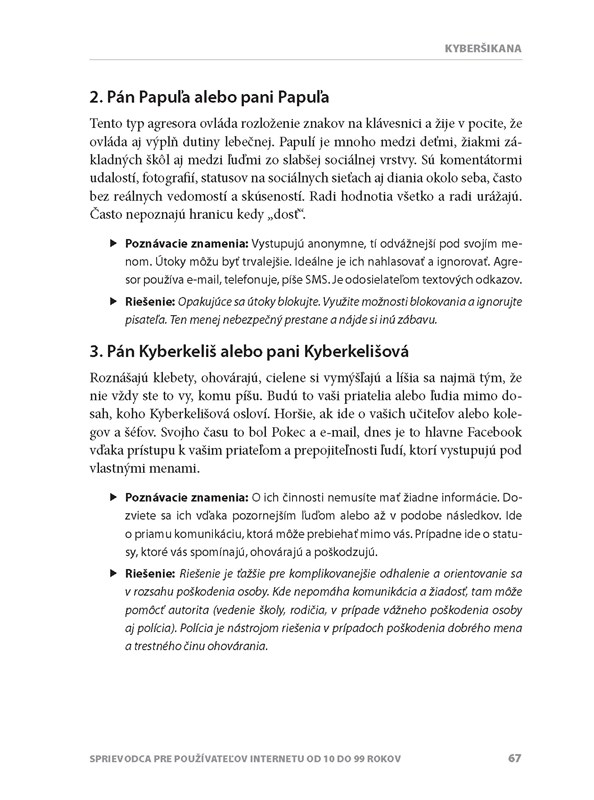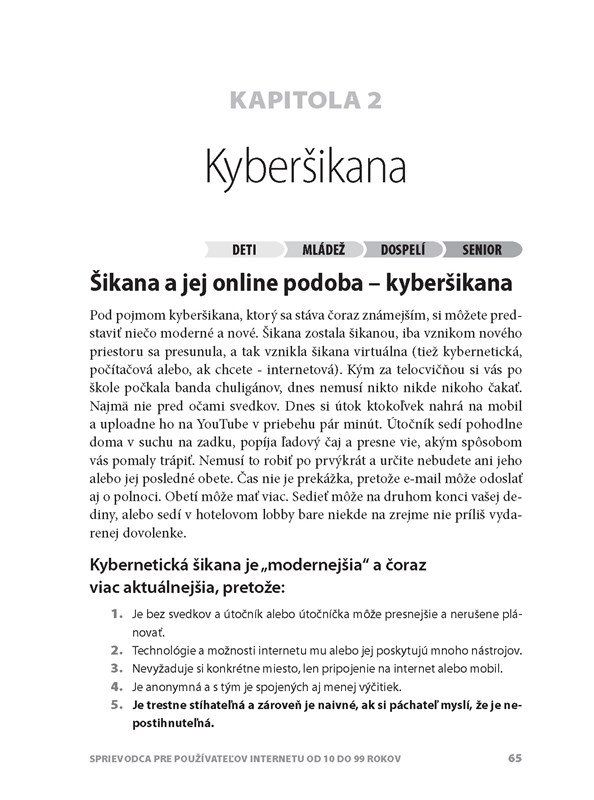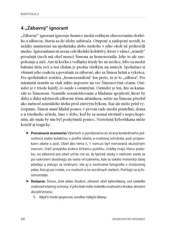Ľudia najviac strácajú ostražitosť, keď majú pocit domnelej istoty. Až pričasto sa pritom spoliehame na rôzne antivírusové programy, aplikácie či jednoducho nie celkom pravdivé presvedčenie, že "mne sa to stať nemôže". No zároveň mnohí z vás už dostali podvodný e-mail s vyhrážkou, že ak do určitého dátumu nezaplatíme požadovanú sumu, anonymný odosielateľ zverejní naše nahé fotky. Zneužívanie nevedomosti, strachu a naivity širokej škály používateľov internetu je základným kameňom publikácie a myslím si, že je skutočne nutné poukázať na rozšírenie podobných neduhov. Ako hovorí sám Tomáš Šalmon, prístup do online priestoru je ako stvorený pre početných klamárov a podvodníkov striehnucich na ľahkú príležitosť. Text je doplnený o množstvo ukážok, plného znenia zákerných e-mailov aj príkladov zo života, kedy dokázal vydierač spôsobiť poriadny otras. Obavy z hanby v prípade, že oslovíme úrady, musí ísť bokom. Individuálna snaha nemusí stačiť a pôvodný problém môže ľahko prerásť do omnoho väčších ťažkostí. Samozrejme, dnešný online svet nestojí iba na elektronickej komunikácii a (Ne)bezpečný internet sa venuje aj ďalším typickým prvkom, bez ktorých si nevieme predstaviť svoj deň. Kniha je rozdelená na dvanásť kapitol, pričom najväčší priestor je venovaný internetovým stránkam a diskusiám, kyberšikane, sociálnym sieťam, zoznamkám a osobnej bezpečnosti. Veľmi ma zaujali aj pasáže o hoaxoch, ktoré najmä dnes zažívajú boom a sú dôkazom, ako ľahko dokážu ľudia podľahnúť klamlivým správam bez toho, aby si overili ich pravosť, a čo je horšie, ochotne ich ďalej šíria. Na sociálnych sieťach - predovšetkým na Facebooku - sme tiež denno-denne svedkami diskusií, kde sa rozmáha nenávisť, kritika, ponižovanie a navážanie sa do každého s odlišným názorom (nehovoriac o často nízkej úrovni štylistiky či gramatiky). Takíto zástancovia svojej pravdy si zrejme ani neuvedomujú, že sa dopúšťajú šikany v kybernetickom priestore a niektoré ich komentáre môžu nadobudnúť trestno-právny charakter. Najviac som sa dozvedel zrejme v časti venovanej kryptomenám. Pojem bitcoin je pomerne rozšírený, ale okolnosti jeho vzniku, šírenia a významu mi pomohli k lepšiemu pochopeniu celej problematiky.