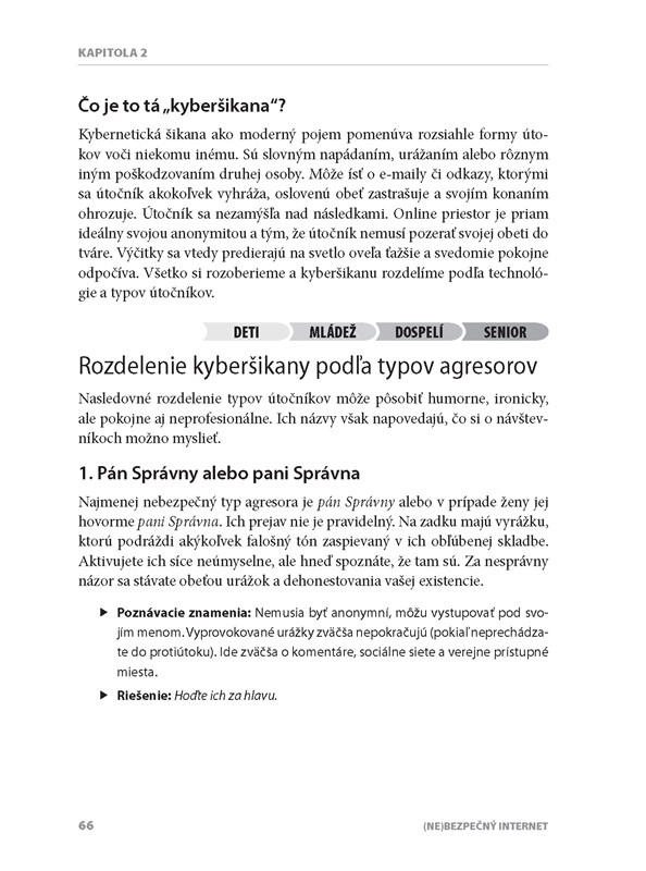 Iba málokedy sa na našom trhu objaví kniha, ktorú by si mal naozaj prečítať každý, kto čo len sporadicky prichádza do kontaktu s internetom. A to sa týka v súčasnosti užívateľov bez obmedzenia veku a ďalších sociálnych faktorov. Pre množstvo informácií a domnelých skúseností si mnohí z nás myslia, že ich sotva dokáže niečo zaskočiť. Tomáš Šalmon vás ľahko vyvedie z omylu a poukáže na to, že neznáme hrozby nad nami visia prakticky denne. Jeho snahou však nie je vystrašiť vás ani odradiť od používania internetu, ale vystríhať pred omylmi, čo môžu viesť k strate financií či dokonca pocitu bezpečia. Publikácia (Ne)bezpečný internet neklame, keď na obálke tvrdí, že je sprievodcom pre používateľov internetu od 10 do 99 rokov. Je určená naozaj všetkým a ja už teraz viem, že ju využijem nielen ako súkromná osoba, ale aj v rámci školskej praxe. Je totiž priam ako stvorená na šírenie osvety či rôzne workshopy.