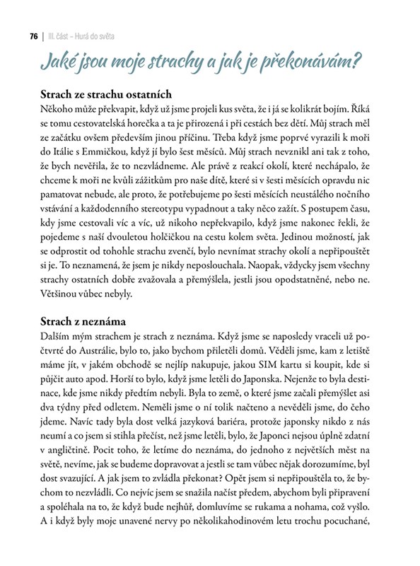 Máma na cestách, která vám ukáže, že i s dětmi není při poznávání světa nic nemožné a má to smysl. Kromě celé řady úžasných osobních zážitků, doplněné o krásné fotografie z cest, vám představí i spoustu tipů a rad, jak cestovat s vašimi ratolestmi i jak s nimi na cestách ušetřit nějakou tu korunu. Tak proč nezačít třeba krátkými výlety po okolí a neskončit nakonec na vysněné cestě kolem světa?