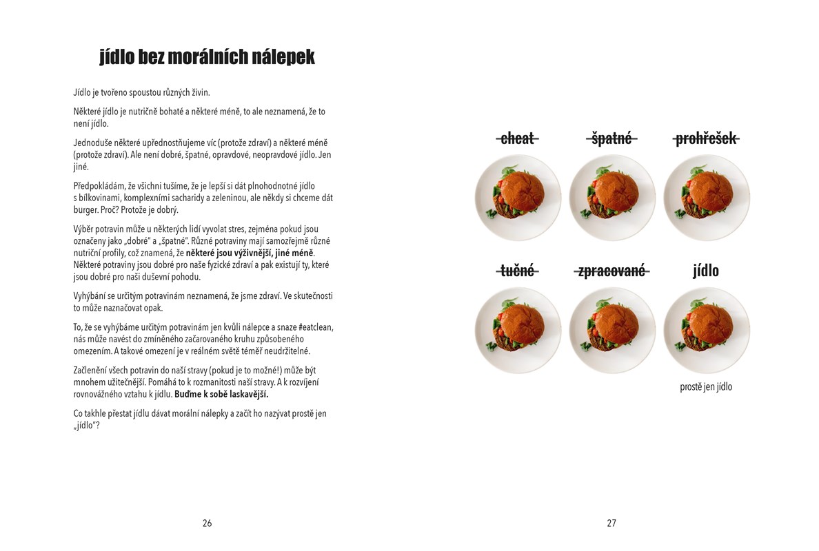 Autorka vám ukáže i jídla takzvaně nezdravá, a naučí vás dívat se na ně z jiného úhlu pohledu. S tvrzením, že neexistuje špatné jídlo, protože jídlo je stále jen jídlo.