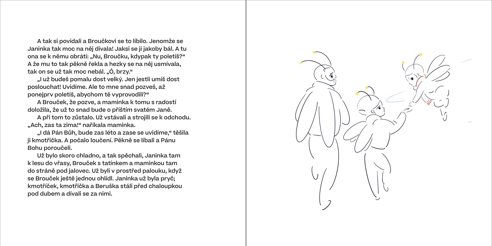 Jedno ze základních děl české literatury pro děti, tentokrát v objevném a novátorském pojetí ilustrátorky Terezy Ščerbové. V poetickém příběhu evangelického faráře Jana Karafiáta (1846–1929) svatojánští broučci jednají jako lidé a lyrické vyprávění je ve své zdánlivé prostotě velmi působivé. A že ne každý konec je v ní dobrý? Taková už je příroda.