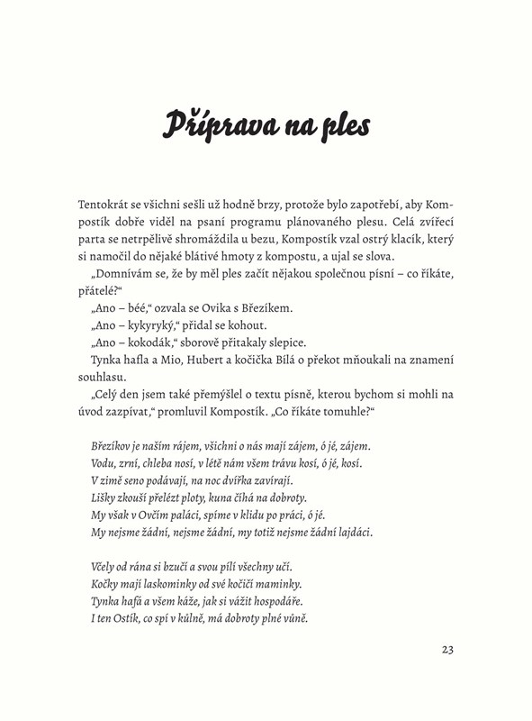 Skřítek Kompostík se na jaře objevil na bezovém keři blízko hospodářského stavení a brzy se tam skamarádil se všemi domácími i divokými zvířátky. Každý večer si u bezu vyprávějí příběhy, které se jim na statku přihodily. Přijměte pozvání skřítka Kompostíka a poslechněte si povídání o hašteřivých slepičkách, o uzdravení kočičky Katky nebo o tom, jak zvířátka pořádala zahradní ples, dříve než se Kompostík opět uloží k zimnímu spánku ve svém podzemním království…