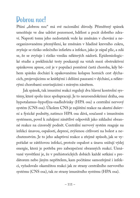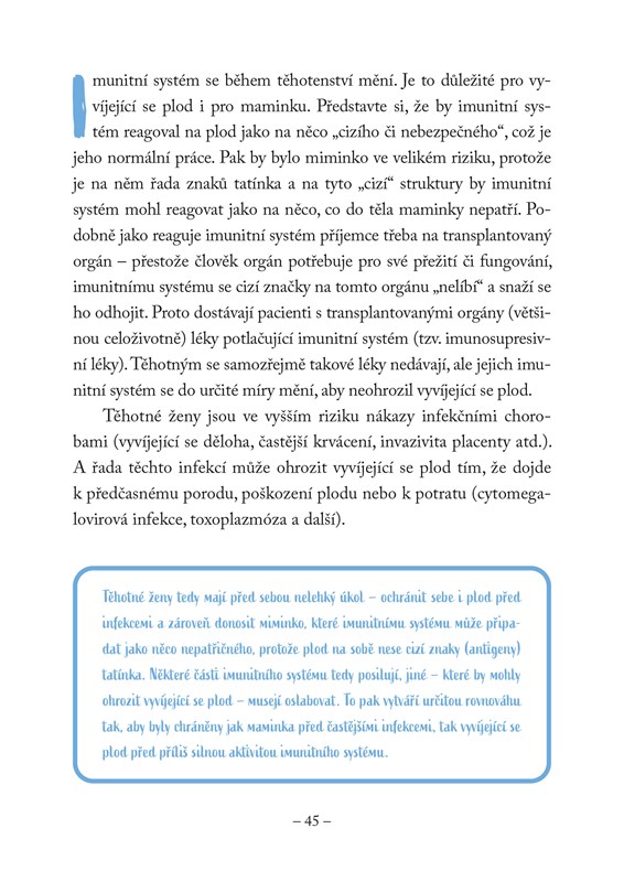 Imunita – někdo ji hledá v ledové vodě, jiný v experimentech s jídelníčkem. Jak však imunitní systém funguje a co se odehrává v našem těle, když nás chrání před nebezpečím nejrůznějšího druhu? Světově uznávaná imunoložka Blanka Říhová vytvořila se svým kolegou Markem Šťastným průvodce lidskou imunitou, v němž nabízí srozumitelné a vědecky podložené odpovědi. Věděli jste třeba, že imunitní systém má – podobně jako náš mozek – paměť, která může trvat celý život? Zjistěte další fascinující fakta o tématu, které bude aktuální v každé době!