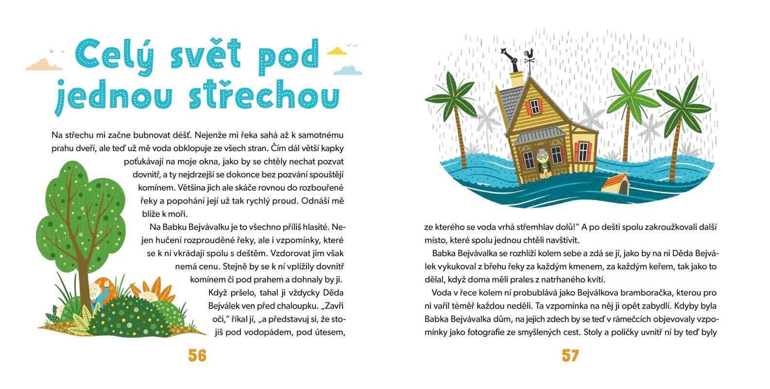 Každý domek chce být zabydlený upomínkami z cest, aby měl kus světa pod střechou. Jenže Babka Bejvávalka se kdysi rozhodla, že už nikdy nevystrčí nos ven. Naštěstí její domeček stojí na kuří nožce a na vandr se vydá po svých i proti její vůli. Dobrodružné vyprávění o tom, jak je důležité překročit práh dveří, vás zabydlí vzpomínkami od hlavy až k patě!