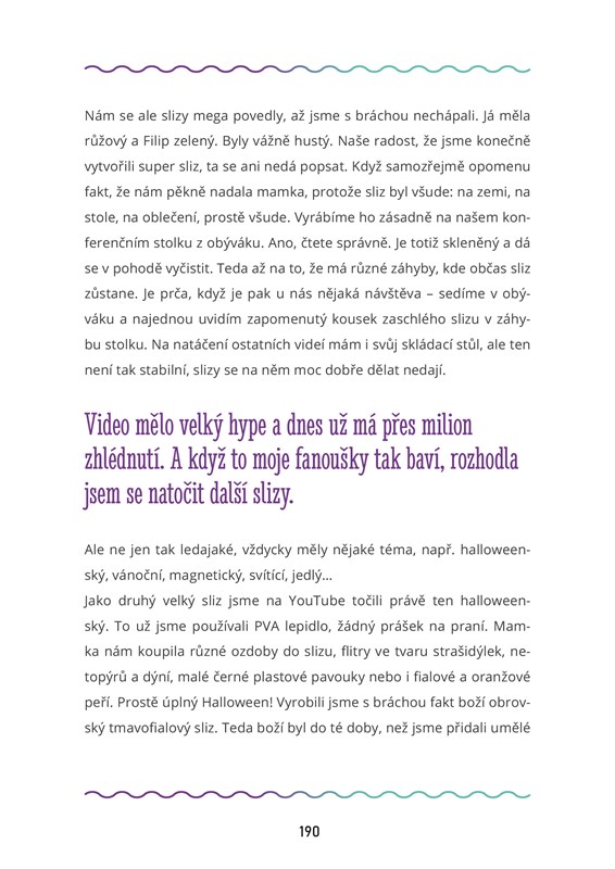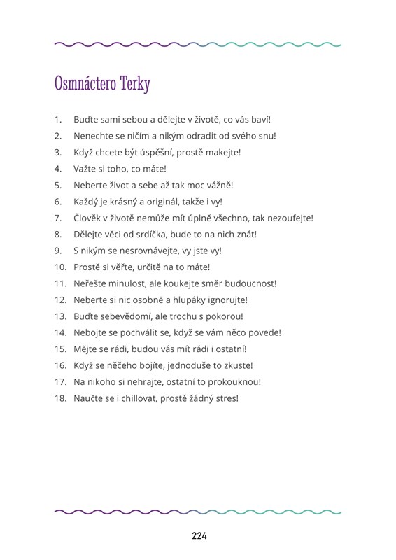 Jsem Terysa, youtuberka a tiktokerka, ale taky úplně normální holka se všemi radostmi a starostmi, co můžete v patnácti mít. Chcete zjistit, jak mi sociální sítě obrátily život naruby, čemu se věnuju, když zrovna nenatáčím videa, a jak si plním své sny? Zvu vás na skvělou jízdu plnou zážitků a inspirace, ale taky sushi, duchů a slizu, během které se o mně dozvíte naprosto všechno. Samozřejmě s humorem, který ke mně patří. Knížku jsem rozdělila do 18 kapitol. Ten, kdo mě zná, ví, že osmnáctka je moje šťastné číslo, které mě provází celou dobu, co jsem na světě. Tak pěkné počteníčko!