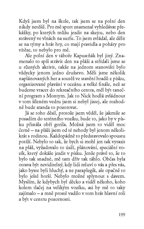 S novou životní situací se vypořádává i Bryan. Po těžkém úrazu skončil na vozíku a jeho myšlenky se točí jen kolem toho, co už nikdy nezažije. Nikdy nebude chodit, nikdy si nezasurfuje, nikdy si nezatančí ploužák s holkou. Zpátky k normálnímu životu a pryč od smutných myšlenek mu má pomoct práce táborového vedoucího.