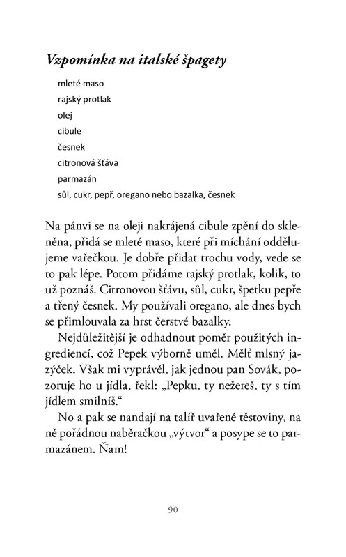 Čekáte od Ivanky Deváté omračující recepty z ingrediencí neslýchaných a cizokrajných? Omyl. Spíše se dozvíte, že ve dvaceti letech ještě neuměla uvařit ani kafe a jaké to bylo dobrodružství. A tak začala vstřebávat jakékoliv znalosti z oboru gastronomie, přičemž byla ochotná osvojit si recept i vyhlášené bordelmamá, pokud by stál za to. A hle, přesto se vdala třikrát a nikdo se s ní nechtěl rozvést. A proč? Protože úžasně vařila.