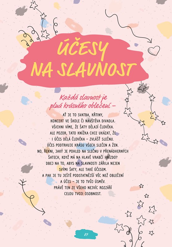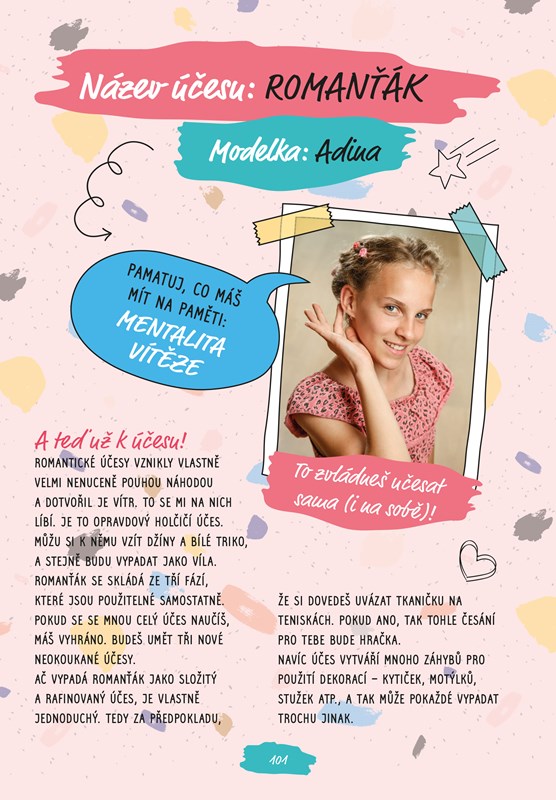 Kniha je určena všem slečnám školou povinným, které se chtějí naučit česat samy sebe. Autorky jim předkládají výběr vhodných účesů a poradí, jak postupovat krok za krokem a jak pečovat o svoje vlasy. A protože první dojem lze udělat jen jednou, shodnou se obě autorky na tom, že na účesu opravdu záleží. Psycholožka Anna Lukešová v neposlední řadě menším i větším slečnám připomene, jak moc je důležitá osobnost i to, jak se projevuje v jejich účesu. Vysvětluje a zdůrazňuje, že nejen pro hezký účes, ale hlavně pro celý jejich postoj je nezbytná MENTALITA VÍTĚZE.