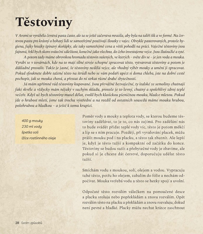 V sedmi kapitolách vás kuchař a publicista Hugo Hromas seznámí se svými oblíbenými recepty, k nimž si vytvořil osobní vztah. Ve svém vyprávění a vzpomínkách vás provede sedmi způsoby, jak tato jídla připravit, a kuchyněmi, kterými prošel. Objevíte krásy a nástrahy tradiční arabské, italské i české kuchyně a kromě úryvků z deníku kuchaře na cestách se můžete těšit i na praxí prověřené poctivé recepty.