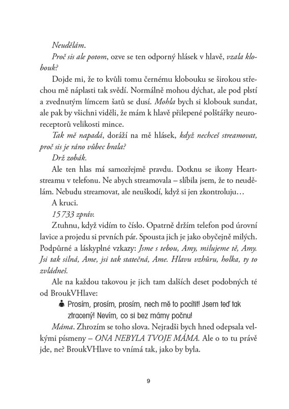 Amy používá Heartstream, aplikaci, která umožňuje ostatním cítit vaše emoce. Je to ta nejopravdovější a nejsyrovější reality show, jakou si můžete představit. Amy skrze ni sdílela zdrcující průběh nemoci své matky i smutek, který prožívala po její smrti. V den matčina pohřbu najde Amy u sebe v kuchyni podivnou ženu. Sebe i celý dům obalila výbušninami a už dlouho si prý s Amy touží promluvit. Kdo je to? Šílena fanynka? A co chce?