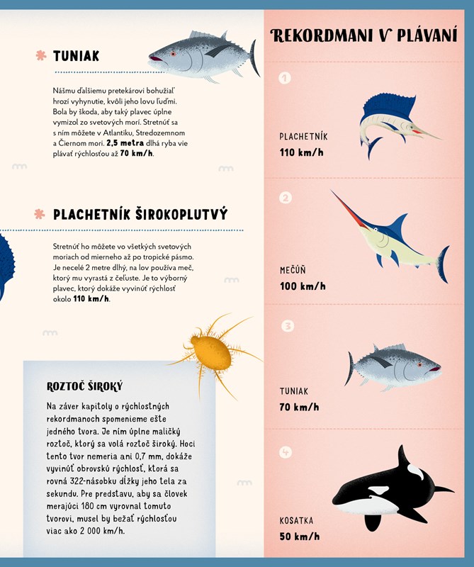 Rozmanitosť sveta zvierat je takmer nekonečná a mnohí z jeho zástupcov majú schopnosti, ktoré vo svete ľudí ovládajú len vymyslení superhrdinovia. Najrýchlejšie živočíchy sveta dokážu vyvinúť rýchlosť ako rýchle autá, rovnako ako malý nenápadný tvor má v skutočnosti silu, ktorú by sme neočakávali ani u trénovaných vzpieračov. Najsilnejší živočích sveta dokáže zdvihnúť mnohonásobok svojej vlastnej hmotnosti a najdlhšie žijúci živočích sa dožíva aj niekoľko stoviek rokov. Najrýchlejší, najpomalší, najsilnejší, najväčší, najmenší, najdlhšie žijúci, najďalej skáčuci, najnebezpečnejší, najkrajší, ale aj najškaredší alebo najhlbšie sa potápajúci – tieto a mnohé ďalšie naj zo zvieracej ríše prináša kniha plná neočakávaných zaujímavostí. Ponor sa s nami do sveta zvieracích supermanov.