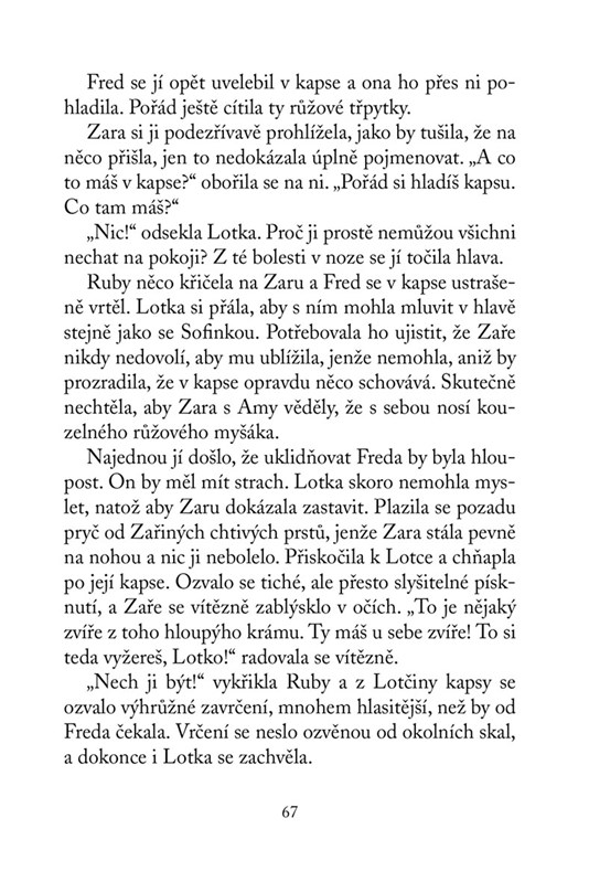 Lottie má za sebou mnohá dobrodružství, proto roste její sebevědomí i magické síly. Když ji na školním výletě začne opět otravovat spolužačka Zara, rozhodne se zastavit její šikanu jednou pro vždy. Bez věrné jezevčice Sofinky si však najednou není jistá, zda to zvládne. Naštěstí jí přijde na pomoc růžový myšák Fred, který má odvahy za dva!