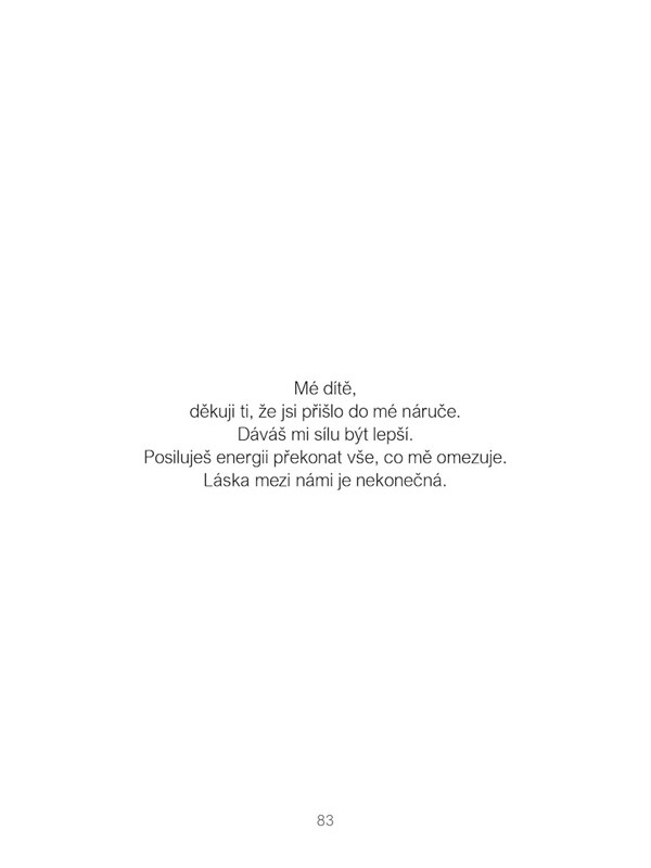 Každý obrázek a každá věta nám chtějí připomenout a naučit nás, jak si vytvořit lepší svět pro sebe i své blízké. Je tak velká, aby se vešla do kabelky, do kapsy i na parapet, aby byla vždy po ruce a aby nám pomohla vést své myšlenky a řídit kroky k radostnému a spokojenému prožívání našeho bytí.
