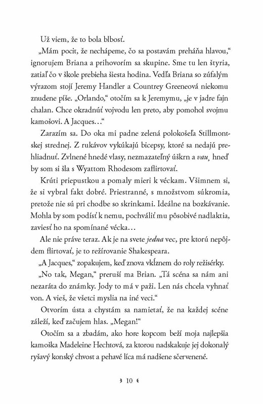 Keď získa úlohu Júlie (áno, tej Júlie), spanikári. Ona predsa nie je herečka! Podobne je na tom aj celkom zlatý Owen, ktorý by najradšej len písal scenáre. Megan sa s Owenom dohodne, že mu pomôže s jeho tvorbou, ak on naopak zaistí, aby si ju všimol potenciálny nový frajer. Iní chalani však Megan zaujímajú čoraz menej, pretože podľahne nádeji, že by Owen mohol byť Romeo, po ktorom vždy túžila.
