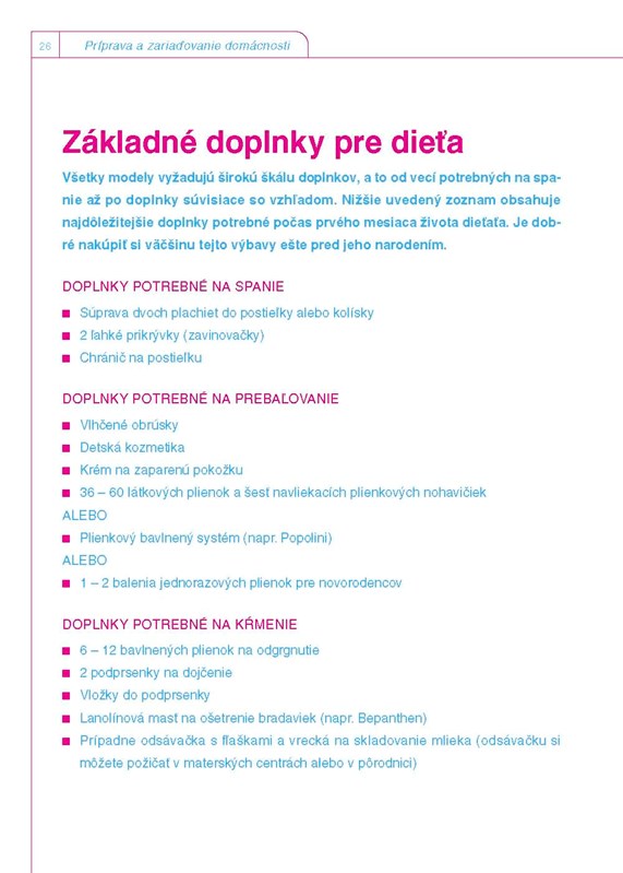 • Ako dieťa prebaľovať, ošetrovať, kúpať, nosiť a čo k tomu potrebujete.