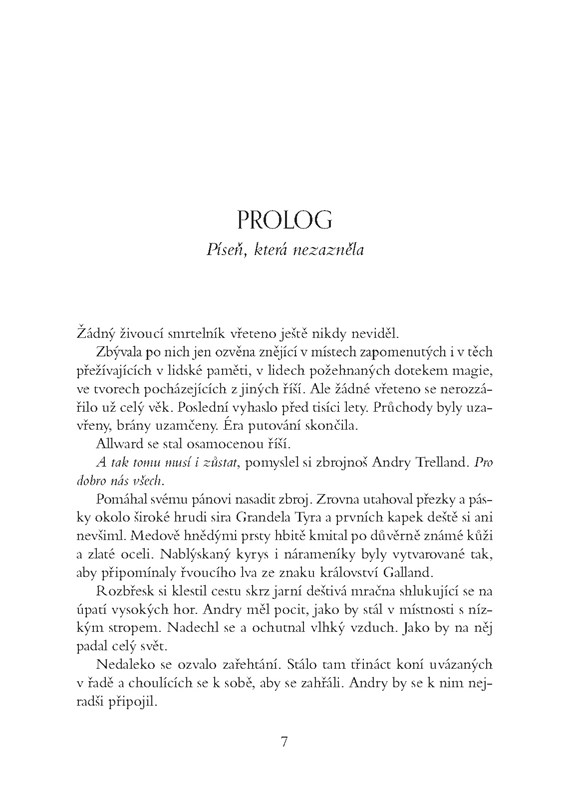 Allwardem se šíří podivná temnota. Cítí to dokonce i Corayne an-Amaratová, která žije až v zapadlém městečku na pobřeží. A brzy objeví pravdu: je posledním žijícím potomkem prastarého rodu a jedinou nadějí na záchranu světa. Ale nebude na to sama. I když tma houstne, hodlá se ke Corayne připojit banda nepravděpodobných hrdinů. Společně se postaví krutému nepříteli – a utkají se s armádou, kterou si nikdo neuměl představit ani v těch nejhorších snech.