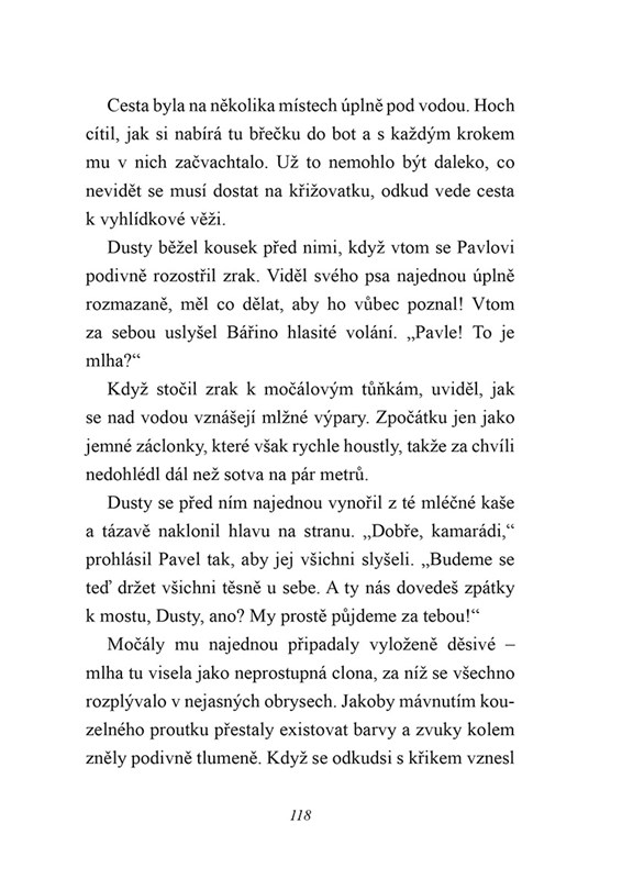 Pavel s Dustym mají spoustu práce s hledáním Alexiny fenky Belly, která utekla z domu a dosud se nevrátila. Situace je o to vypjatější, že se Belle mají každým dnem narodit štěňátka. Při pátrání v blízkých močálech číhá na chlapce a psa nejedno nebezpečí: starý podivínský muž s puškou, který uprostřed mokřad žije, banda chuligánů, která si krátí dlouhou chvíli různými lumpárnami a záškodnickými akcemi, a nakonec i nečekaně silná bouřka.