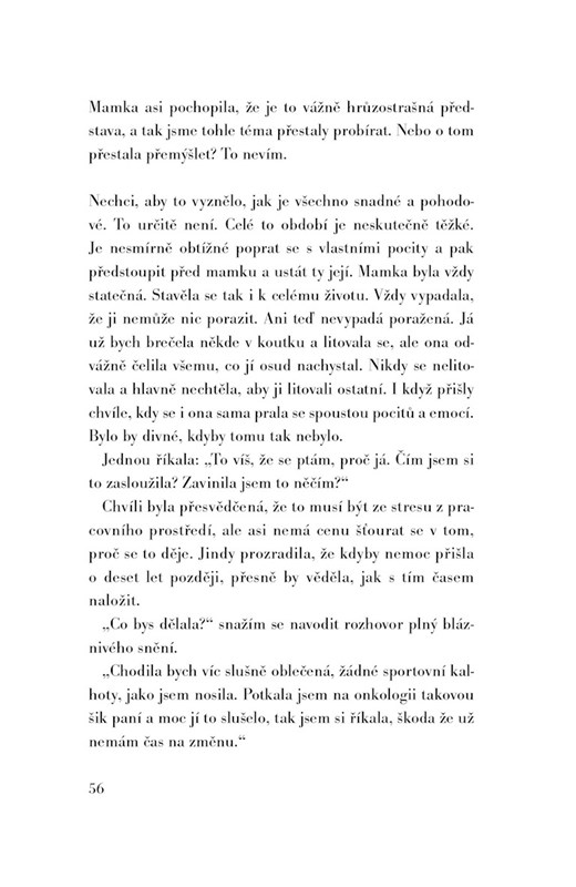 Kniha vypráví skutečný příběh rodiny, která si žije šťastným, poklidným životem. Jenže v jedné malé chvilce se všechno změní. Maminka vážně onemocní a přichází boj o holý život. Najednou vše, co bylo doposud důležité, přestává mít váhu a zůstávají jen opravdové hodnoty.