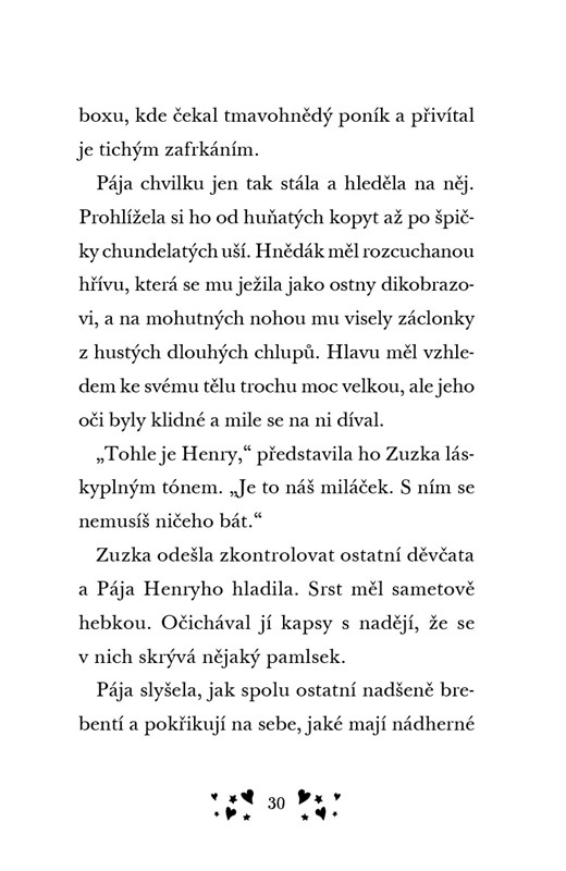Pája miluje poníky a s jedním se už i přátelí. Když o prázdninách nastupuje na tábor pořádaný farmou ve Slunečném údolí, je přesvědčená, že bude mít na starost právě jeho – krásného poníka, kterého navštěvovala v ohradě cestou ze školy. Místo vysněného Mráčka však dostane dobráckého poníka Henryho, který je vhodný pro začátečníky. Pája je rozhodnutá získat Mráčka stůj co stůj, i když ví, že vůči Henrymu to není fér. Jenže všechno bude trochu jinak…