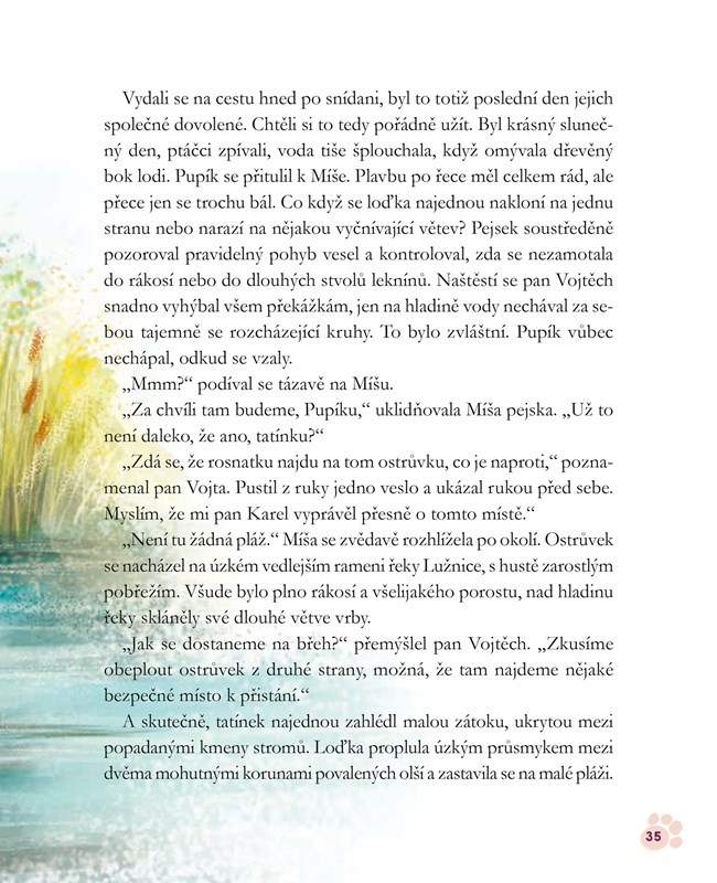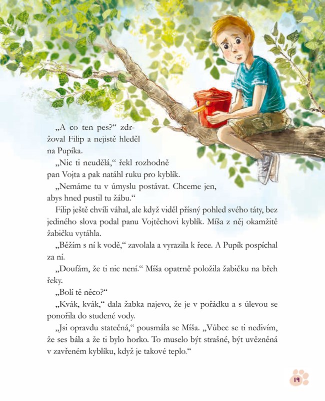 Začínají prázdniny a Míša odjíždí se svým tatínkem tábořit k řece. Dny a noci strávené ve stanu přinášejí spoustu dobrodružství a Míša je nadšená zdejší přírodou. Brzy poznává obyvatele okolní divočiny: malou žabičku, rodinku rákosníků a také mrštnou vydru. Když se zvířátka dostanou do potíží, Míša s Pupíkem udělají všechno pro to, aby jim pomohli.
