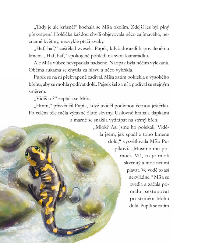 Záhy jede Míša na výlet do hor, kde se společně s Pupíkem snaží zachránit mloka, který spadl do potoka. Jenže během záchranné akce spadne do vody i Pupík. Stane se mu něco?