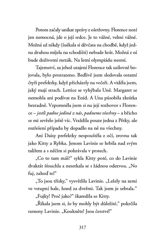 Návrat do lavic má pro Daisy a Hazel trpkou pachuť. Nová školní předsedkyně Elizabeth Hurstová spolu se svou smečkou věrných prefektek šikanují mladší ročníky a nad školou se začíná vznášet černý mrak strachu a sváru.