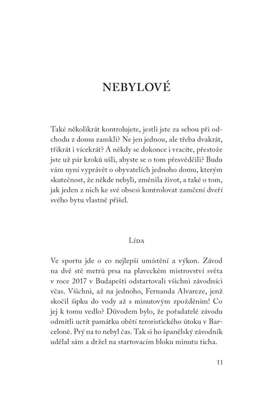 Povídková kniha příběhů pro po-bavení a k za-myšlení. Zve čtenáře na pouť do různých koutů Evropy – na Faerské ostrovy, Mallorcu, ostrov Skye nebo do Porta –, ale hlavně k sobě samému. Zpracovává témata odpuštění (Žlutá stužka), mementa mori (Mallorca), moudrosti stáří (Skye), rodinných křivd (Nebylové II), obchodu s iluzí a pomíjivosti jistot (Kvartální bohém), překonávání sebe sama (Teď a tady) a je i o tom, jak nám může změnit život to, že jsme někde nebyli (Nebylové).