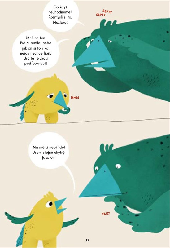 Představte si, že jste ptáci. Představte si, že žijete v krásném lese. A teď si představte, že ten les chce někdo zapálit. To by se vám přece nelíbilo, že? Nohovi a Nožičkovi se to taky nelíbí. Aby svůj les zachránili, musí uhodnout lstivé hádanky ohnivého mužíčka Pinďuly Panďuly. První ze série příběhů pro nejmenší od Daniely Fischerové, jejíž knihy pro děti jsou ověnčeny mnoha významnými cenami, plný krásných ilustrací Jakuba Kouřila.