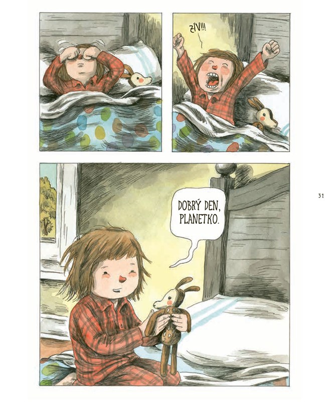 Po dlouhém dni, stráveném skákáním v listí a čtením oblíbených knížek, je tahle malá holčička pořádně utahaná – ale její nejoblíbenější plyšák Planetka teprve začíná dovádět. Planetka se kamarádí se psem, slupne sušenky a vrhne se do neznáma za dobrodružstvím. Něžný, poutavý příběh mezinárodně uznávaného výtvarníka a autora slavných komiksů, LINIERSE, ukáže dětským čtenářům zázraky, které se dějí jen v noci a tajně, až když děti zavřou oči.