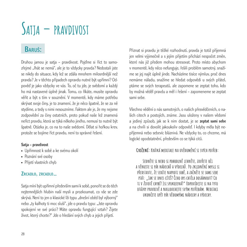 Cílem jógy není dostat se do co nejnáročnější pozice a v ní pak vypadat dobře – jde především o hledání vlastní cesty a harmonického vztahu k existenci. Herečka Patricie Pagáčová vás spolu se svojí švagrovou, lektorkou jógy Bárou Pagáčovou, provedou jamy a nijamy: desaterem jógových pravidel pro život. Odlehčete s nimi svoji mysl a najděte v józe cestu za pozitivnějším přístupem k sobě a ke svému okolí!