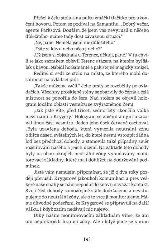 Nedlouho po uzavření míru hrozí další válka s mimozemskou civilizací. Podaří se jí s pomocí agenta Samanthy Parksové zabránit?