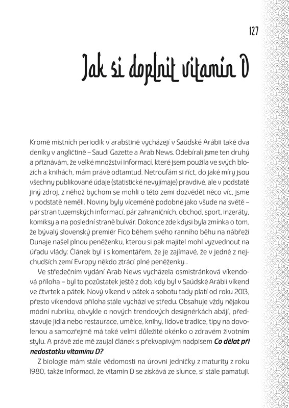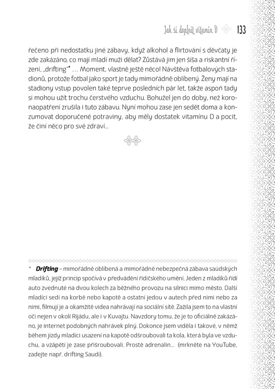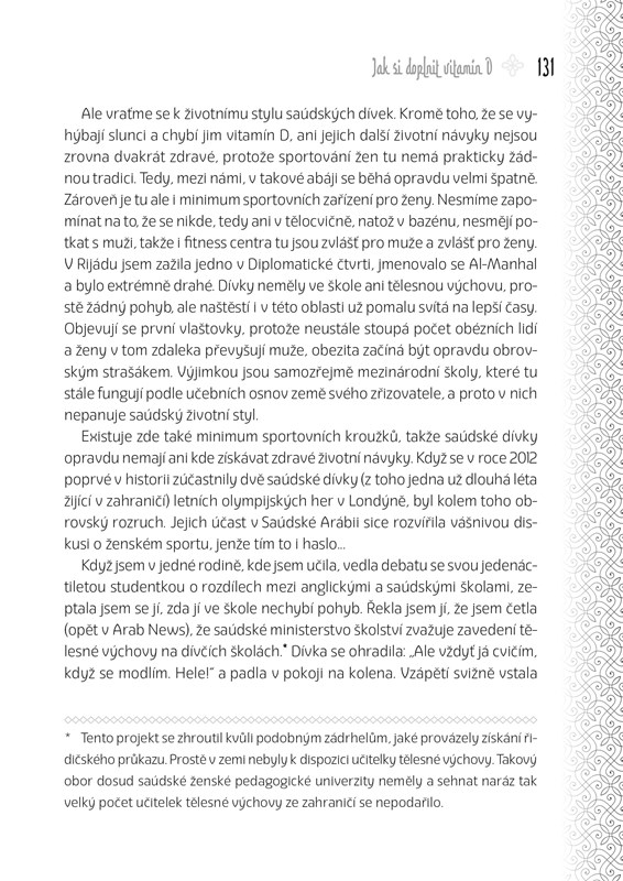 Arábii... těch rozdílů je poměrně dost a někdy je opravdu těžké pochopit tuto zemi plnou kontrastů a tajemství. Autorka knihy, slovenská spisovatelka Soňa Bulbeck, je ovšem ukázkovým příkladem toho, že se to dá. V Saúdské Arábii žila šest let se svým britským manželem a měla tak možnost nahlédnout skutečně „pod pokličku“ této tajuplné, ale přeci jen pozvolna se světu otvírající, země.