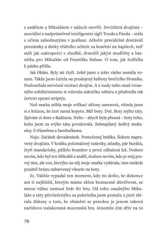 Třetí knížka mladé české autorky vypráví o drzých hrách osudu a ženských duších s humorem, psychologickým vhledem a lehkostí.