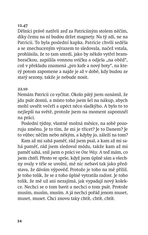 Martin je nejdražší člen rodiny. Ne snad, že by byl oblíbenější než ostatní. Prostě jenom hodně stojí. Vzhledem k tomu, že mu je třicet, by se nad sebou už mohl zamyslet. Což je vlastně tak nějak to jediné, co s tím dělá. Zamýšlí se nad sebou. Obzvlášť během úzkostných stavů, kdy dokáže během minuty vymyslet sto příčin, proč se na něj jeho kluk co nevidět vykašle, nebo sto způsobů, jak co nevidět zemře. (Co když bude mít škytavku a škytnutím mu nadskočí srdce a šťouchne do plíce a ta se propíchne o žebro?!) Věří, že to nejlepší, co pro sebe v tuhle chvíli může udělat, je vést si deník. Terapii si zrovna dovolit nemůže. Měl nečekané výdaje. Jako každý měsíc. Už několik let. No a co. Vždyť pracuje jako redaktor ve One Way, české mutaci nejprestižnějšího časopisu o všem, co je krásné. To má celé dny kázat víno a pít vodu? No, zatím to vypadá, že mu nic jiného nezbývá. Ale to se možná brzy změní. Martin má totiž pádný důvod domnívat se, že je dědicem švédského trůnu. Třeba by mohl svůj deník vydat knižně? Byl by to takový Deník princezny, akorát ze života, protože by to nebyla fikce. Anebo jo? Ať každý věří, čemu chce.