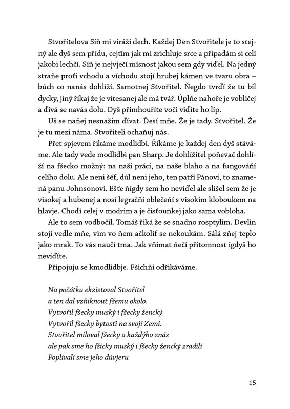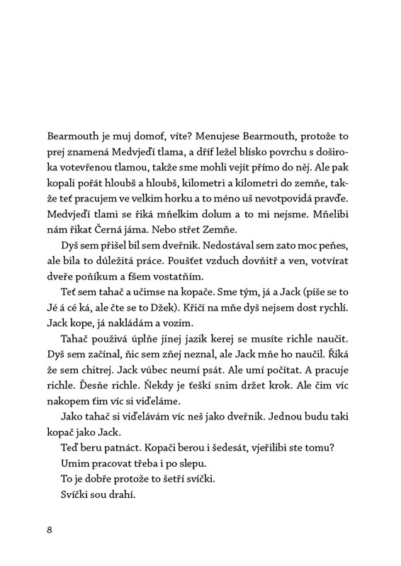 Život v Bearmouthu je plný tvrdé dřiny a odříkání. Žabka tu žije od čtyř let. Sluncem ozářený svět na povrchu se stal vybledlou vzpomínkou. Drsné pracovní podmínky, krutost vedoucích a temnota podzemních tunelů jsou v dole každodenní realitou.