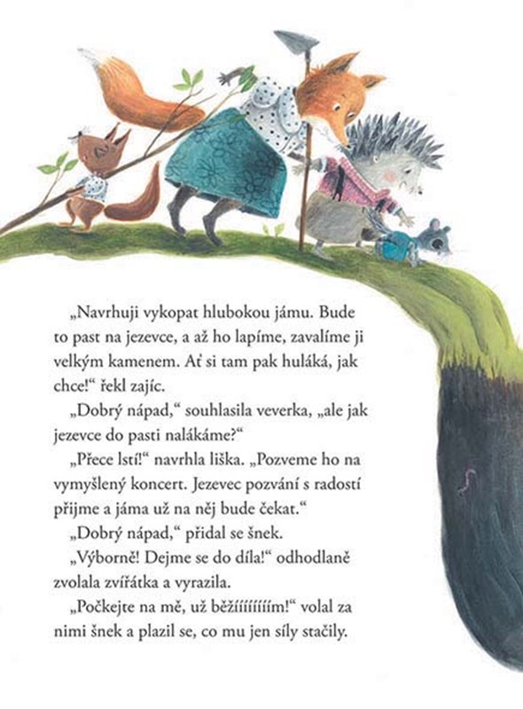 Byl jednou jeden jezevec, a ten moc rád zpíval. Každý den si už od rána procvičoval hlasivky a lesem se nesla jeho nekonečná hlasová cvičení. Zvířátka bydlící v okolí už toho měla dost, a tak vymyslela, jak jezevce utišit. Jenže i ten nejlepší plán může mít trhliny a často platí, že kdo jinému jámu kopá, sám do ní padá...